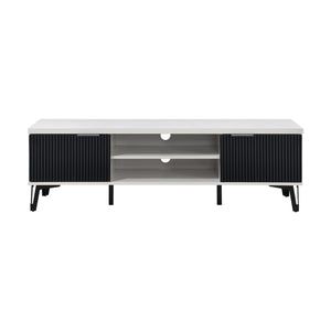 Description Elevate your entertainment area with this stylish and practical 59-inch wood TV stand. Made from high-quality MDF and particleboard, this stand provides a sturdy foundation for your TV and other media devices. The two spacious storage cabinets and open shelving offer ample space for your entertainment essentials, keeping everything n...