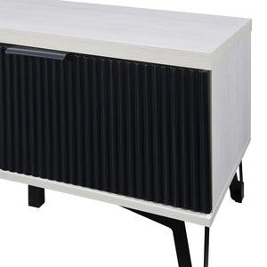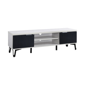 Description This modern TV stand offers a sleek and functional solution for your entertainment space. It features a spacious surface and a well-structured design, offering ample storage options. The stand is crafted from durable MDF and particleboard, ensuring a sturdy build that withstands everyday use. With its open shelving and two storage ca...