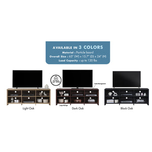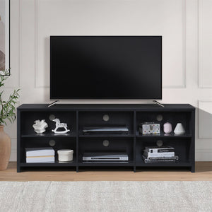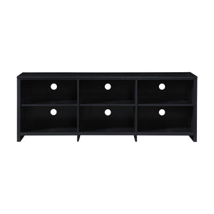 Upgrade your living room with this Modern Entertainment TV Stand. Crafted from high-quality engineered wood. Its sleek design features multiple open shelves, providing ample space for your media components, gaming consoles, and decorative items. The minimalist style and dark finish blend seamlessly with any contemporary decor, making it an ideal centerpiece for your home entertainment setup.