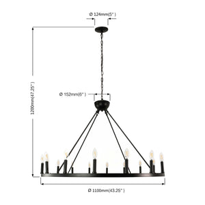 Ancora 16 Light Chandelier Wagon Wheel (43“ Wide) Matte Black Steel Frame | Large Home Decoration | Foyer, Entryway, Dining Room