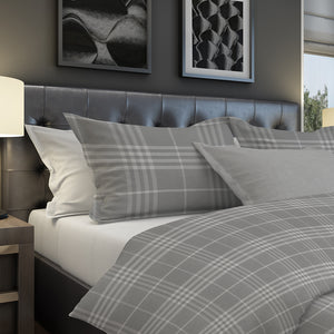 Banbury Plaid Grey Reversible Duvet Cover Set with 1 Pillow Sham