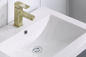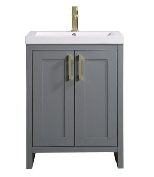 >Single Sink Vanity with Storage â€?This beautiful bathroom vanity was designed to fit your modern lifestyle and bathroom space perfectly with full-length doors, plenty of storage area, and a deep resin sink that’s made for comfort and elegance.