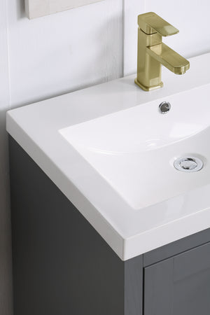 >Beautiful Resin Sink â€?Each of these sink vanities for bathrooms has a stain-resistant resin sink that’s beautiful, durable, and highlights the stunning grey frame and brushed brass door handles.