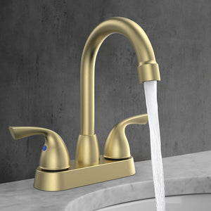 Bianca Surface Mounted 2 Handles Bathroom Faucet with Drain Kit Included in Brushed Gold