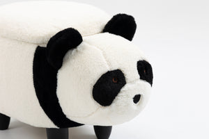 Fun, soft, and super cute - this panda bear storage ottoman will be a great addition as whimsical décor in a living room or perfect in your kid's room, playroom, or nursery. It's perfect for a footstool, small chair, ottoman, and even has a small hidden storage space. The removable lid allows toys and knick knacks to be hidden away. This adorable pink pig features solid wood legs, no tools assembly, and super easy to spot clean. Hand screw the feet in, apply the felt pads, and you are ready to enjoy this panda in less than 5 minutes! The sturdy legs and wood frame offer a very durable construction. This panda is larger than it looks, the overall size is ~14"W x 24"L x 14"H, which is perfect for any room as an accent or focal piece.
