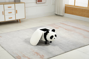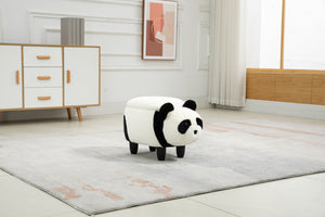 Black and White Panda Animal Storage Ottoman with Wood Legs