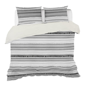 Kingham Contemporary Boho Grey Stripes Duvet Cover Set with Pillow Sham
