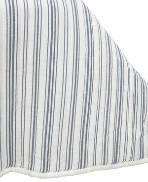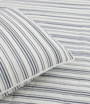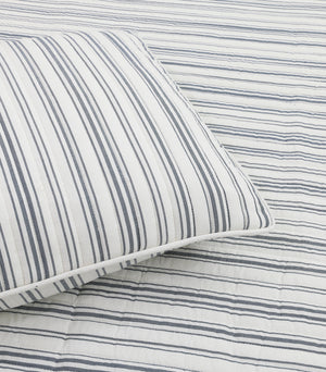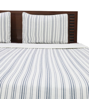 Ticking Stripe Ivory and Blue Cotton Quilt Set