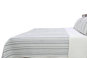 Add modern European style to your home with this reversible ticking stripe quilt set. Use this quilt set to redecorate your master or guest bedroom. With its striped design on one side and a solid sateen on the other, brought together using a modern channel quilting pattern, this lightweight quilt is perfect for all seasons. Reversible design gives you two stylish patterns in one set. With a 100% cotton cover and polyester fill, this quilt set is machine washable making it effortless to maintain.