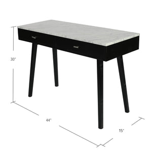 - Viola 44" x 15" Rectangular Italian Carrara White Marble Writing Desk with Legs