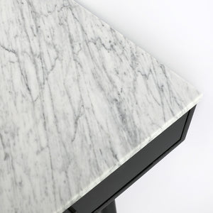 Alto 18" Square Italian Carrara White Marble Side Table with Black Wood Legs