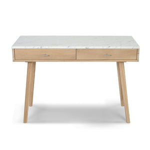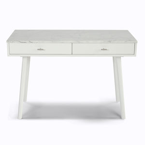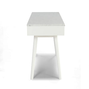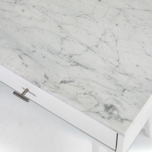 Viola 44" x 18" Rectangular Italian Carrara White Marble Writing Desk with Legs