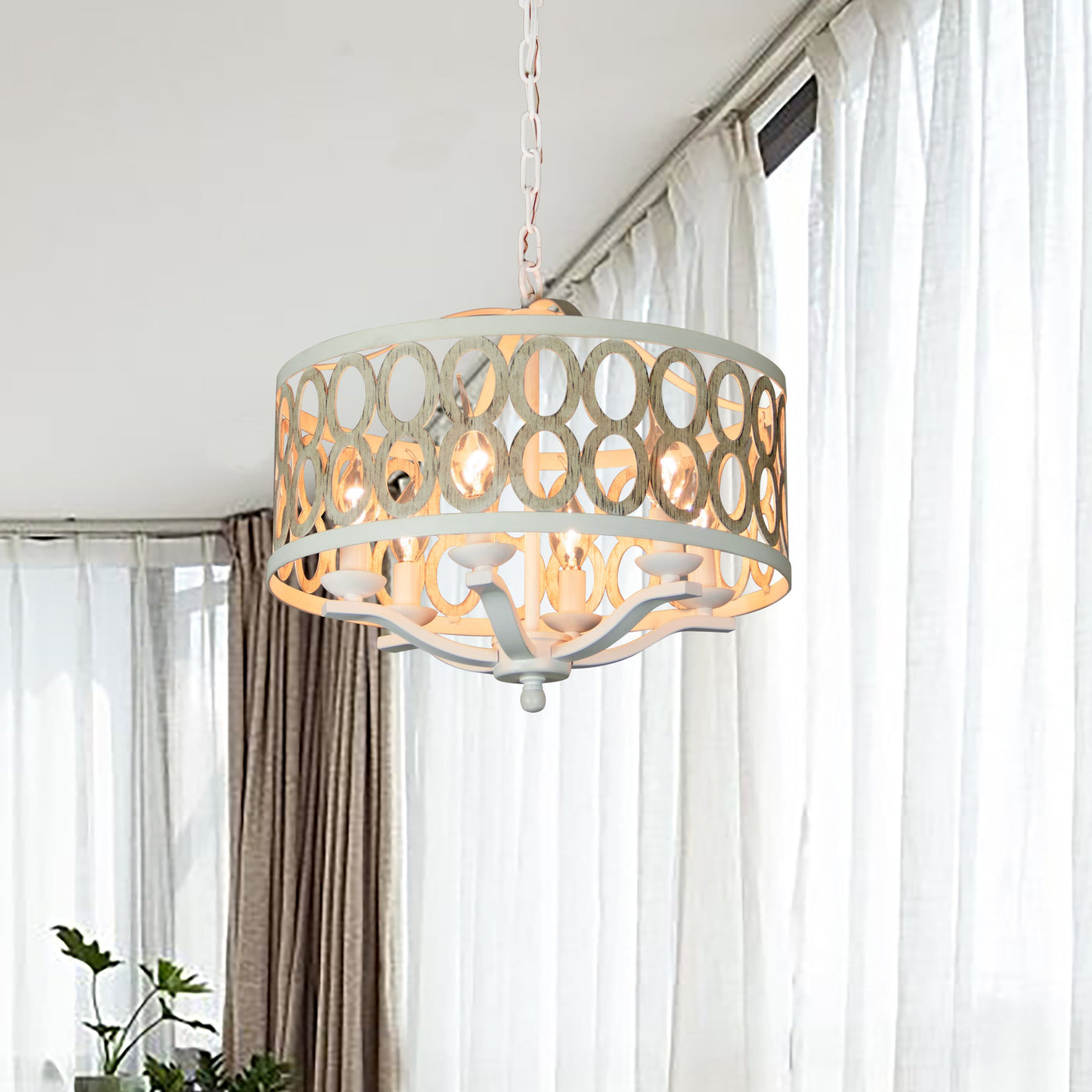 The right lighting and home decor are truly what turns a house into a home, especially when it comes to the overhead fixtures that bring it all together. That’s especially true for this Canyon Home Drum Chandelier with 6 lights that features intricate design patterns, a charming beige, wood-brushed finish, and bright undertones that create unimaginable warmth.