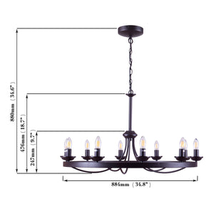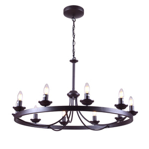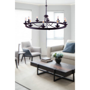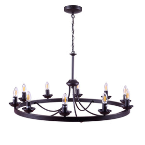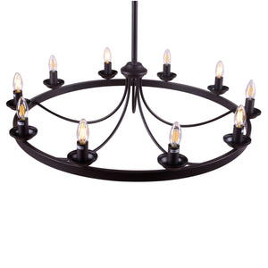 12-light 37" W Dimmable Wagon Wheel Chandelier
