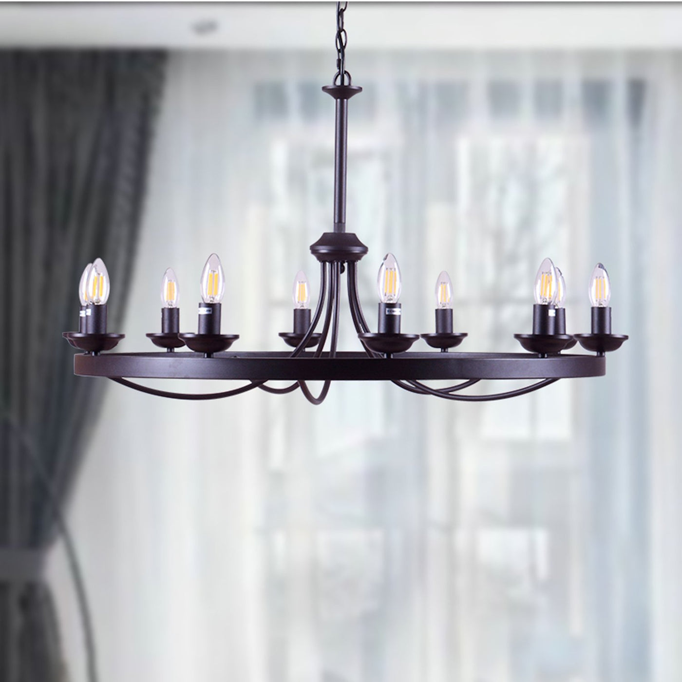 - Erica 10-Light Candle Style Wagon Wheel Chandelier