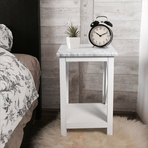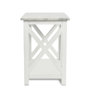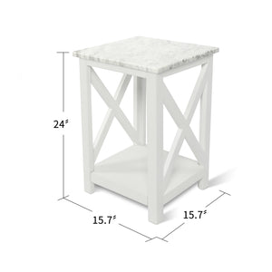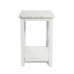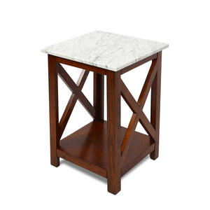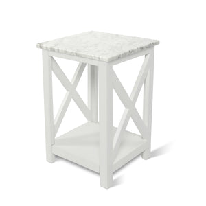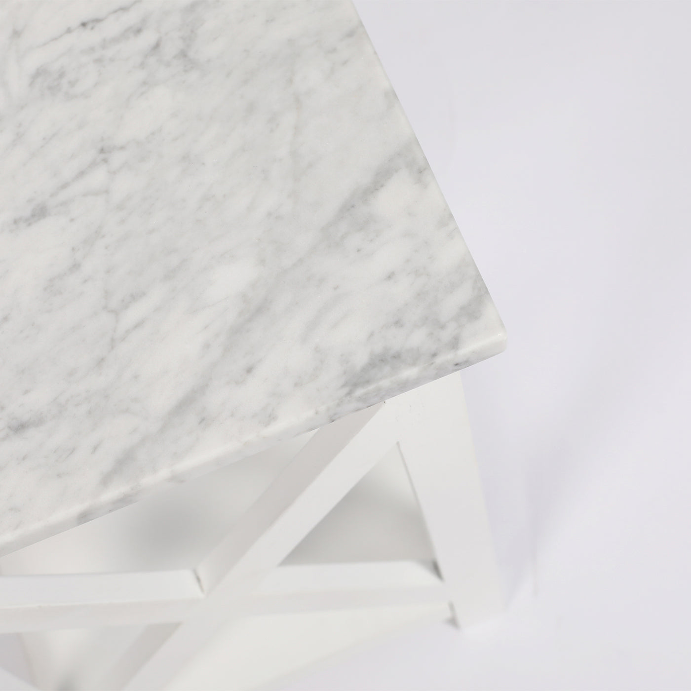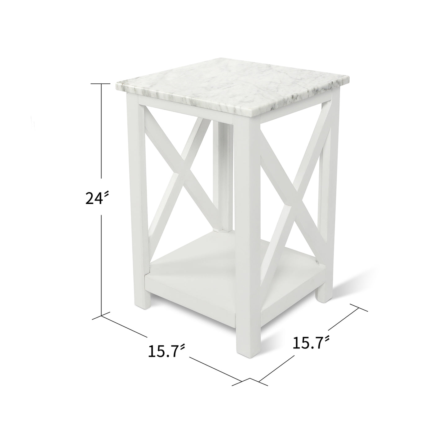 - Agatha 15" Square Italian Carrara White Marble Side Table with solid wood Legs