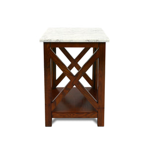 Description Versatile for many functions and rooms, this stunning marble-top end table with drawer provide storage to hide away your accessories and clutter. The desk base and legs come in four different neutral wood finishes paired with a classy white and grey marble to elevate and add style to any space, this versatile piece welcomes a vintage...