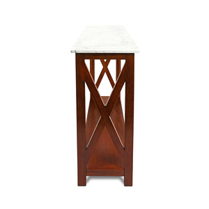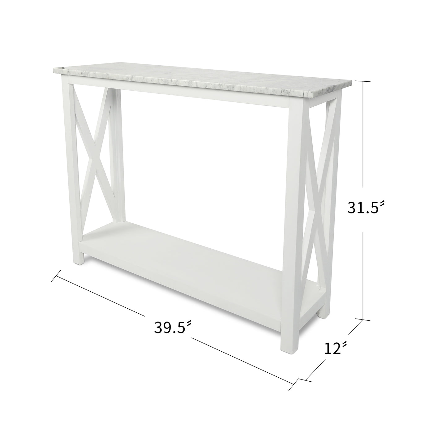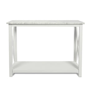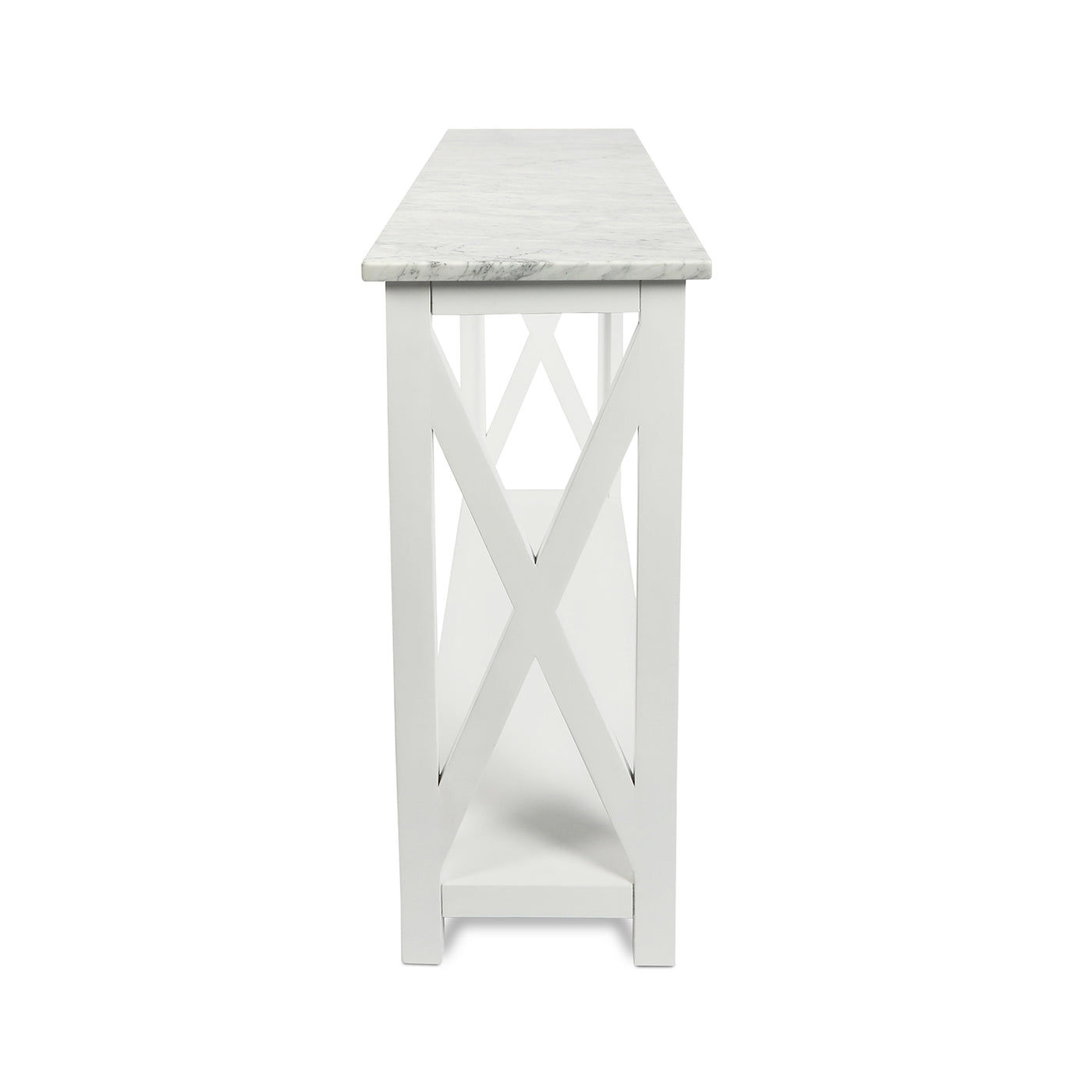 Agatha 39" x 12" Rectangular Italian Carrara White Marble Console Table with Solid Wood Legs
