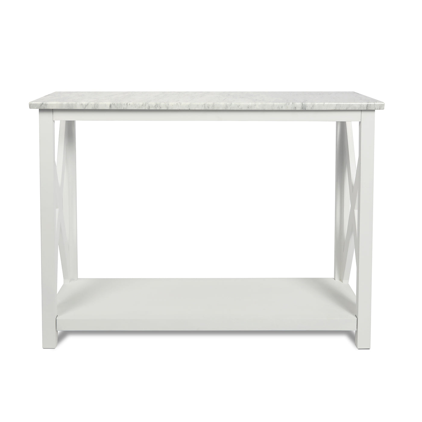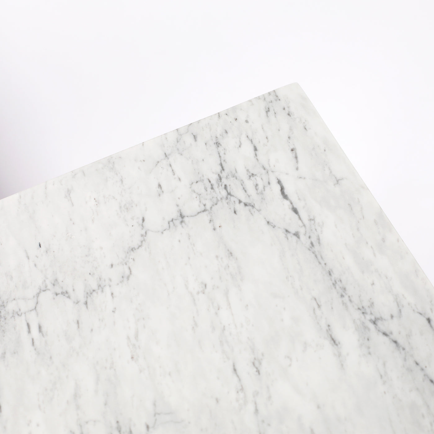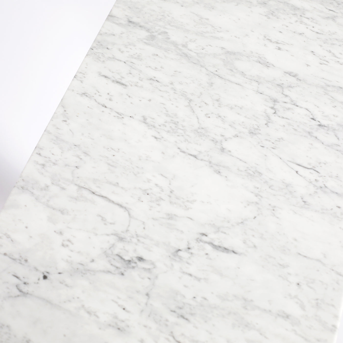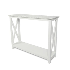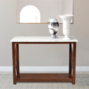 Sleek, elegant, and contemporary, our attractive Agatha Console Table is a striking piece of furniture that would sit beautifully in a contemporary or industrial-style dining room, living space, hallway, or open-plan scheme. With a solid wood base and Italian white Carrara marble top, it’s tactile and eye-catching and can be utilized for many different purposes. Featuring a bottom shelf that provides plenty of space to display collectibles or every day necessities with ease of access, is large enough for all your daily needs.