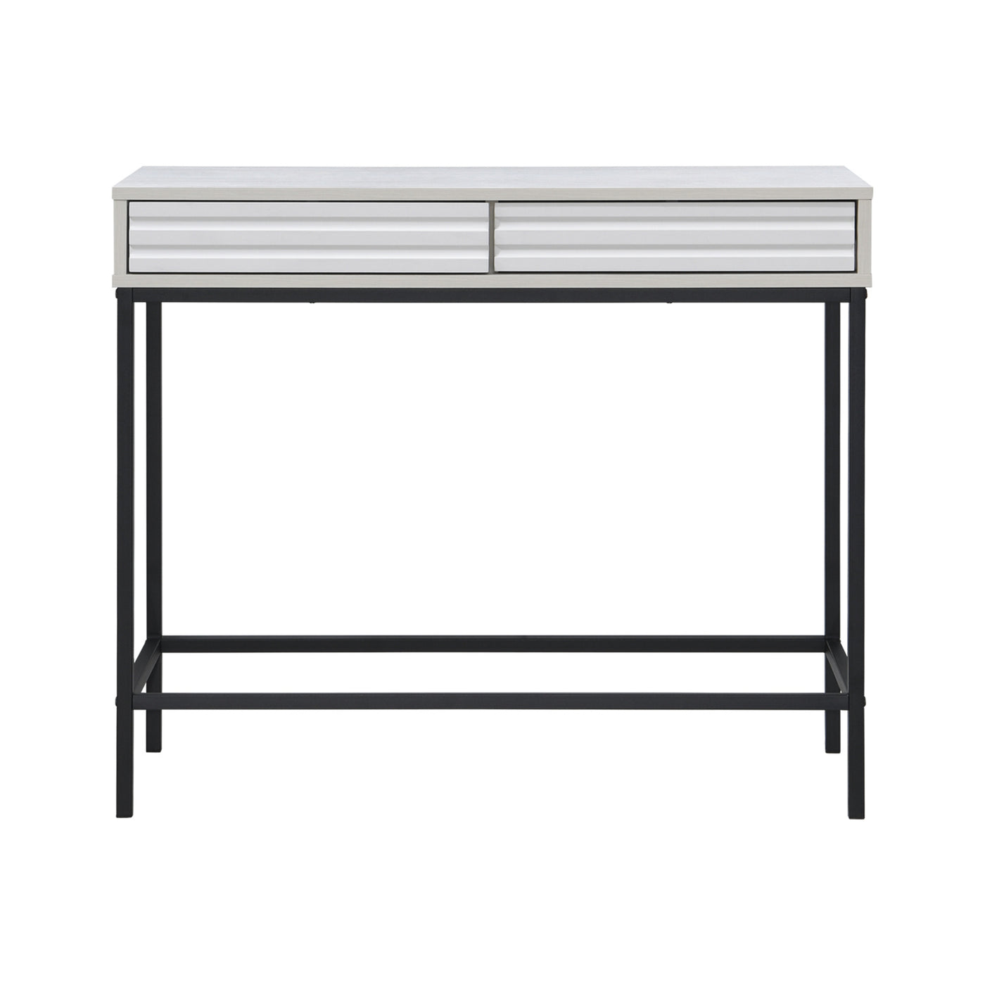 Description Put your keepsakes on a table you equally cherish and love. This handsome marble console table conveniently adapts to the living room behind the sofa, in a foyer under a mirror, or at the end of a dining room as a serving or bar area. Layer onto its unique white and grey marble top a table lamp, framed photos, potted plants, or cryst...