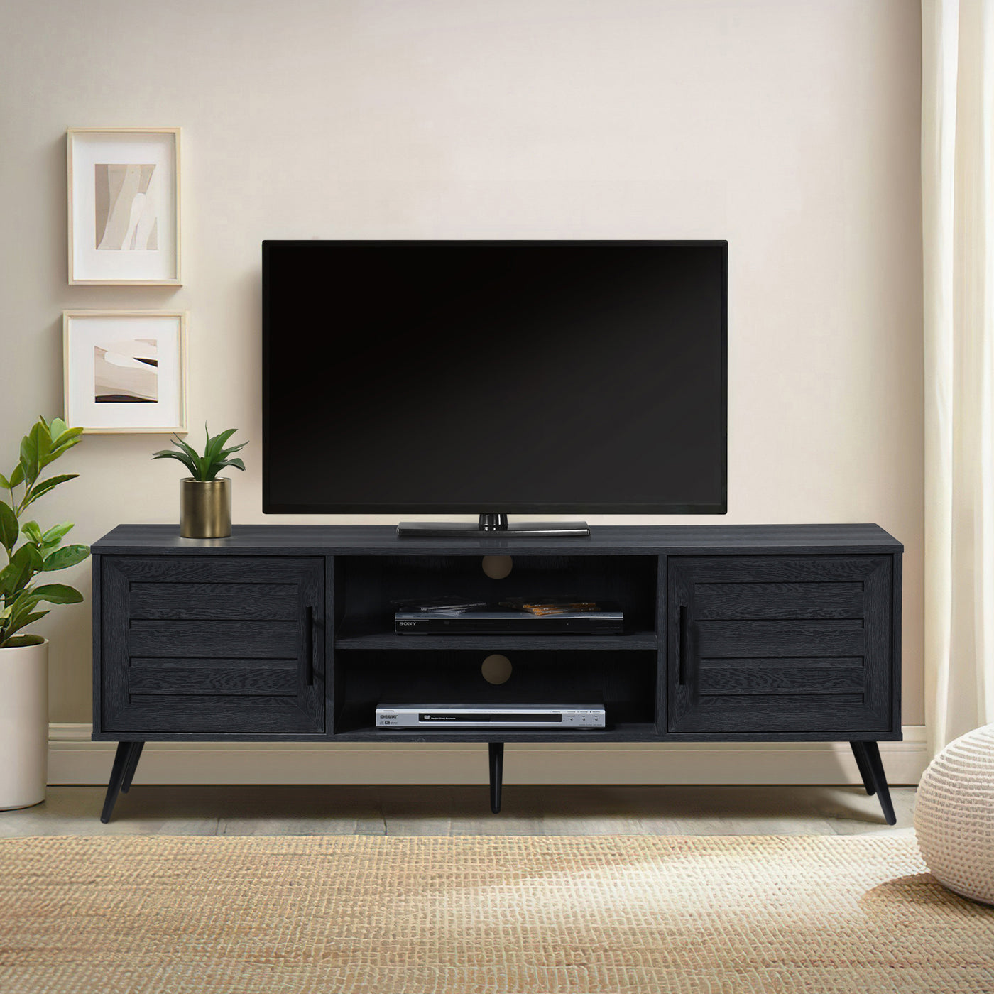 - 59 in. Wood TV Stand with 2 Storage Cabinets Fits TV's up to 65 in.
