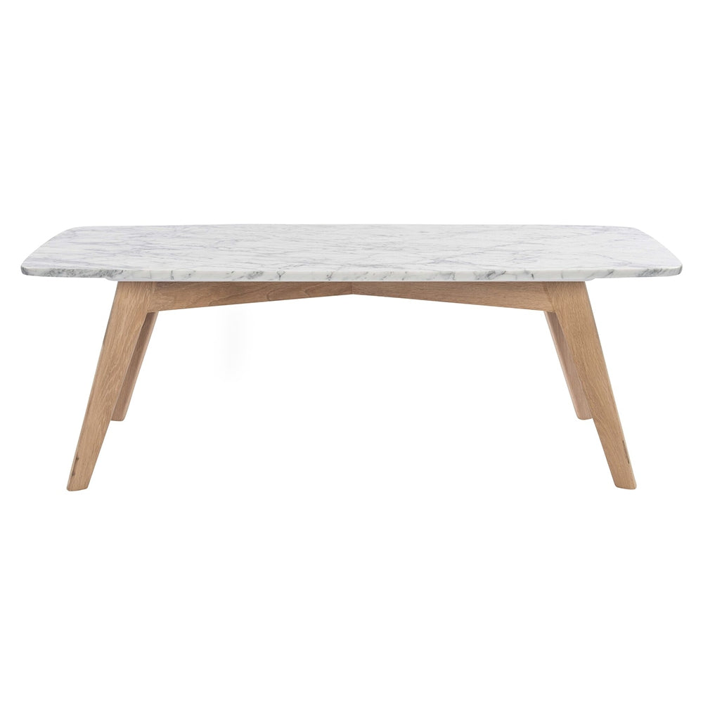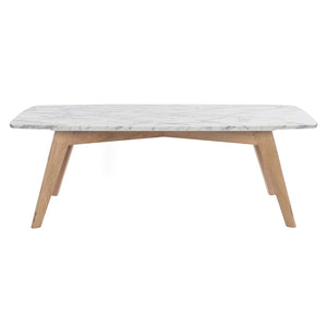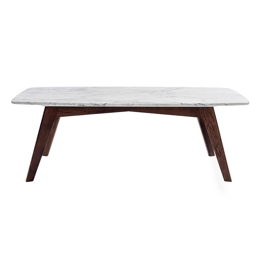 Description Center your living room around this stunning marble-top coffee table. Fitted with a handy slatted shelf, it serves both as a stylish focal point and convenient storage. The solid white and grey Italian carrara marble is cut to a rectangle shape modernized with curved mid-century edges. The wood frame comes in two neutral finishes wit...