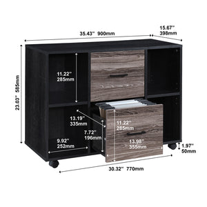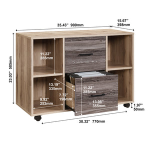 2-Drawer 39in. W File Cabinet for Home Office, Mobile Lateral Filing Cabinet, Printer Stand with Open Storage Shelves for Kids Room