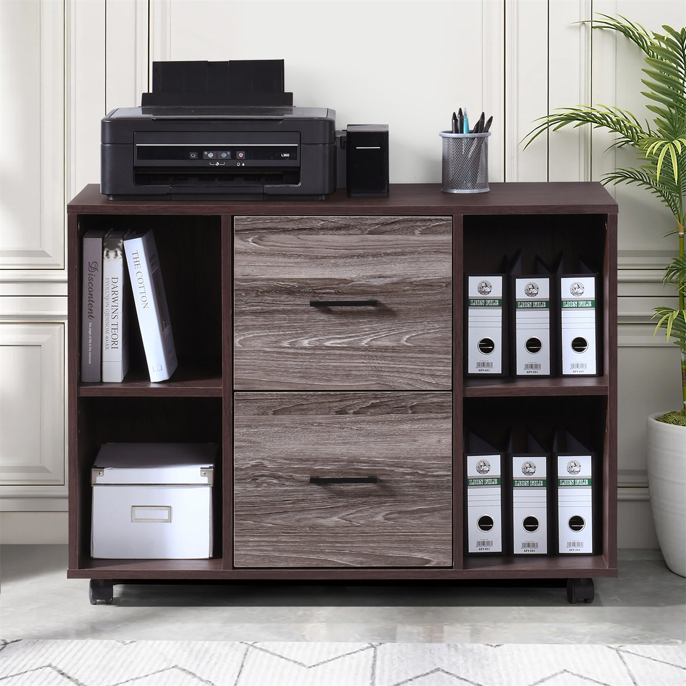 - 2-Drawer 39in. W File Cabinet for Home Office, Mobile Lateral Filing Cabinet, Printer Stand with Open Storage Shelves for Kids Room