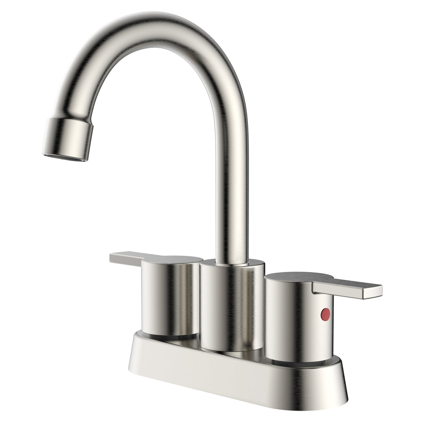 4 in. Double Handle Centerset Double Handle Bathroom Faucet with Drain Kit Included