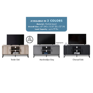 {"id":7326289690721,"title":"47 in. Wood TV Stand with 2 Storage Cabinets Fits TV's up to 50 in.","handle":"47-in-wood-tv-stand-with-2-storage-cabinets-fits-tvs-up-to-50-in","description":"\u003ch2\u003e\u003cspan style=\"color: #ff8000;\"\u003e\u003cstrong\u003eDescription\u003c\/strong\u003e\u003c\/span\u003e\u003c\/h2\u003e\n\u003cp\u003eThis 47-inch wood TV stand combines style and functionality, offering a sleek solution for your entertainment space. Made from durable MDF and particleboard, it features a solid construction that ensures longevity. With two storage cabinets and open shelving, this stand provides ample space for your media devices, books, and other accessories. The minimalist design, paired with its versatile color options, allows it to blend seamlessly into any room. Choose from three elegant color options to perfectly match your home décor. \u003c\/p\u003e\n\u003ch2\u003e\u003cspan style=\"color: #ff8000;\"\u003e\u003cstrong\u003eOverview\u003c\/strong\u003e\u003c\/span\u003e\u003c\/h2\u003e\n\u003cul\u003e\n\u003cli\u003eSpacious Storage: Two cabinets and open shelving provide plenty of space for media players, books, and decorative items.\u003cbr\u003e\n\u003c\/li\u003e\n\u003cli\u003eDurable Build: Constructed from MDF and particleboard for a sturdy, long-lasting design.\u003c\/li\u003e\n\u003cli\u003eVersatile Design: Minimalist style that complements a variety of modern or traditional home décor styles.\u003c\/li\u003e\n\u003cli\u003eFinish Options: Available in Grey, Charcoal Oak, and Tender Oak to suit any décor.\u003c\/li\u003e\n\u003cli\u003eMetal Frame Accents: Features sleek metal frame accents for an added touch of sophistication.\u003c\/li\u003e\n\u003cli\u003eEasy Assembly: Includes all necessary hardware for quick and hassle-free setup.\u003c\/li\u003e\n\u003c\/ul\u003e","published_at":"2025-06-22T23:37:56-07:00","created_at":"2025-06-22T23:37:54-07:00","vendor":"JHome Commerce","type":"TV Stand","tags":["TV Stand"],"price":12999,"price_min":12999,"price_max":12999,"available":true,"price_varies":false,"compare_at_price":18570,"compare_at_price_min":18570,"compare_at_price_max":18570,"compare_at_price_varies":false,"variants":[{"id":42255726510177,"title":"Grey","option1":"Grey","option2":null,"option3":null,"sku":"PWS-EC4093-GY","requires_shipping":true,"taxable":true,"featured_image":{"id":36713973547105,"product_id":7326289690721,"position":1,"created_at":"2025-06-22T23:35:06-07:00","updated_at":"2025-06-22T23:35:07-07:00","alt":null,"width":2000,"height":2000,"src":"\/\/jhomecommerce.myshopify.com\/cdn\/shop\/files\/PWS-EC4093-GY_L01.jpg?v=1750660507","variant_ids":[42255726510177]},"available":true,"name":"47 in. Wood TV Stand with 2 Storage Cabinets Fits TV's up to 50 in. - Grey","public_title":"Grey","options":["Grey"],"price":12999,"weight":31751,"compare_at_price":18570,"inventory_management":"shopify","barcode":"196648071554","featured_media":{"alt":null,"id":28806492192865,"position":1,"preview_image":{"aspect_ratio":1.0,"height":2000,"width":2000,"src":"\/\/jhomecommerce.myshopify.com\/cdn\/shop\/files\/PWS-EC4093-GY_L01.jpg?v=1750660507"}},"requires_selling_plan":false,"selling_plan_allocations":[]},{"id":42255726542945,"title":"Charcoal Oak","option1":"Charcoal Oak","option2":null,"option3":null,"sku":"PWS-EC4093-CO","requires_shipping":true,"taxable":true,"featured_image":{"id":36713974595681,"product_id":7326289690721,"position":10,"created_at":"2025-06-22T23:35:26-07:00","updated_at":"2025-06-22T23:38:10-07:00","alt":null,"width":2000,"height":2000,"src":"\/\/jhomecommerce.myshopify.com\/cdn\/shop\/files\/PWS-EC4093-CO_L01.jpg?v=1750660690","variant_ids":[42255726542945]},"available":true,"name":"47 in. Wood TV Stand with 2 Storage Cabinets Fits TV's up to 50 in. - Charcoal Oak","public_title":"Charcoal Oak","options":["Charcoal Oak"],"price":12999,"weight":31751,"compare_at_price":18570,"inventory_management":"shopify","barcode":"196648071561","featured_media":{"alt":null,"id":28806493077601,"position":10,"preview_image":{"aspect_ratio":1.0,"height":2000,"width":2000,"src":"\/\/jhomecommerce.myshopify.com\/cdn\/shop\/files\/PWS-EC4093-CO_L01.jpg?v=1750660690"}},"requires_selling_plan":false,"selling_plan_allocations":[]},{"id":42255726575713,"title":"Tender Oak","option1":"Tender Oak","option2":null,"option3":null,"sku":"PWS-EC4093-TO","requires_shipping":true,"taxable":true,"featured_image":{"id":36713975545953,"product_id":7326289690721,"position":17,"created_at":"2025-06-22T23:35:44-07:00","updated_at":"2025-06-22T23:38:10-07:00","alt":null,"width":2000,"height":2000,"src":"\/\/jhomecommerce.myshopify.com\/cdn\/shop\/files\/PWS-EC4093-TO_L01.jpg?v=1750660690","variant_ids":[42255726575713]},"available":true,"name":"47 in. Wood TV Stand with 2 Storage Cabinets Fits TV's up to 50 in. - Tender Oak","public_title":"Tender Oak","options":["Tender Oak"],"price":12999,"weight":31751,"compare_at_price":18570,"inventory_management":"shopify","barcode":"196648071578","featured_media":{"alt":null,"id":28806493995105,"position":17,"preview_image":{"aspect_ratio":1.0,"height":2000,"width":2000,"src":"\/\/jhomecommerce.myshopify.com\/cdn\/shop\/files\/PWS-EC4093-TO_L01.jpg?v=1750660690"}},"requires_selling_plan":false,"selling_plan_allocations":[]}],"images":["\/\/jhomecommerce.myshopify.com\/cdn\/shop\/files\/PWS-EC4093-GY_L01.jpg?v=1750660507","\/\/jhomecommerce.myshopify.com\/cdn\/shop\/files\/PWS-EC4093-GY_01.jpg?v=1750660690","\/\/jhomecommerce.myshopify.com\/cdn\/shop\/files\/PWS-EC4093-GY_02.jpg?v=1750660690","\/\/jhomecommerce.myshopify.com\/cdn\/shop\/files\/PWS-EC4093-GY_03.jpg?v=1750660690","\/\/jhomecommerce.myshopify.com\/cdn\/shop\/files\/PWS-EC4093-GY_04.jpg?v=1750660690","\/\/jhomecommerce.myshopify.com\/cdn\/shop\/files\/PWS-EC4093-GY_05.jpg?v=1750660690","\/\/jhomecommerce.myshopify.com\/cdn\/shop\/files\/PWS-EC4093-GY_06.jpg?v=1750660690","\/\/jhomecommerce.myshopify.com\/cdn\/shop\/files\/PWS-EC4093-GY_07.jpg?v=1750660690"