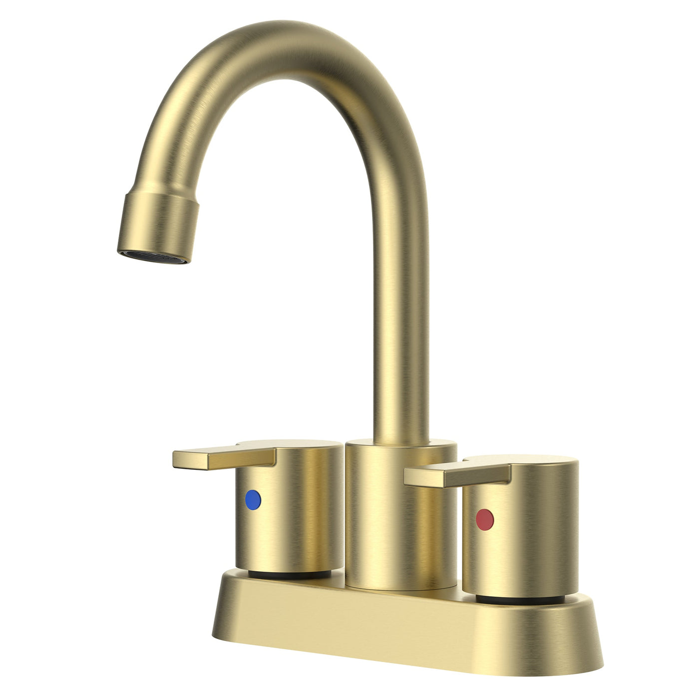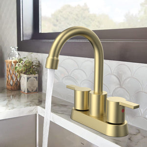 Alamo Surface Mounted 2 Handles Bathroom Faucet with Drain Kit Included in Brushed Gold