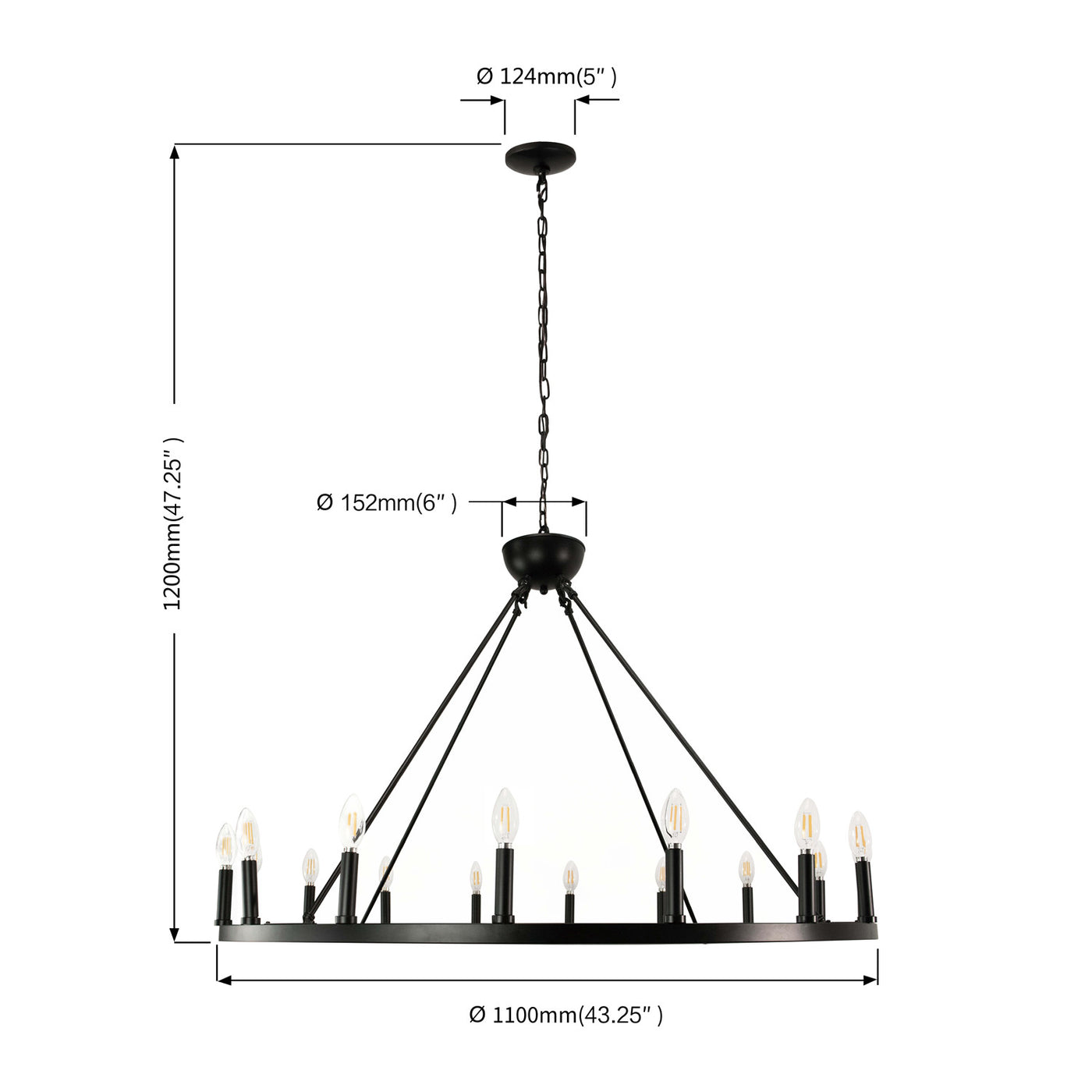 {"id":4739719954529,"title":"Ancora 16 Light Chandelier Wagon Wheel (43“ Wide) Matte Black Steel Frame | Large Home Decoration | Foyer, Entryway, Dining Room","handle":"ancora-16-light-chandelier-wagon-wheel-43-wide-matte-black-steel-frame-large-home-decoration-foyer-entryway-dining-room","description":"\u003ch2\u003e\u003cspan style=\"color: #ff8000;\"\u003e\u003cstrong\u003eDescription\u003c\/strong\u003e\u003c\/span\u003e\u003c\/h2\u003e\n\u003cp\u003eThe right lighting can set the mood, create ambiance, and inspire guests the moment they walk into a room or your home, especially when it’s a Canyon Home Tear Drop Chandelier that features a rustic, wood-patterned finish and supports up to twelve 25-watt bulbs (not included). Providing the perfect balance of style, functionality, and class, it looks great in almost any room or area of your home and is sure to set the right tone for your decorative style.\u003c\/p\u003e\n\u003ch2\u003e\u003cspan style=\"color: #ff8000;\"\u003e\u003cstrong\u003eOverview\u003c\/strong\u003e\u003c\/span\u003e\u003c\/h2\u003e\n\u003cp\u003e\u003cspan\u003e\u0026gt;These steel wagon wheel light fixtures include everything you need to easily replace an existing ceiling light and install this chandelier with minimal effort.\u003c\/span\u003e\u003c\/p\u003e\n\u003cp\u003e\u003cspan\u003e\u0026gt;Classic Wagon Wheel - Larger and wider than standard globe chandeliers, these “wheelsâ€?offer a minimalistic, yet eye-catching design that’s perfect for today’s modern homes. In fact, the sleek, matte black finish and 12-bulb design can help you create just the right atmosphere.\u003c\/span\u003e\u003c\/p\u003e\n\u003cp\u003e\u003cspan\u003e\u0026gt;Minimal Assembly Required - These chandeliers are easy to install in place of almost any existing light fixture and come with all the hardware you’ll need to get it hung up with minimal effort. As always, we recommend having a partner help you based on size and lifting safety.\u003c\/span\u003e\u003c\/p\u003e\n\u003cp\u003e\u003cspan\u003e\u0026gt;The 16-light design provides 360° light coverage that’s soft, warm, and not overpowering, making a perfect addition to dining areas or front door entryways.\u003c\/span\u003e\u003c\/p\u003e\n\u003cp\u003e\u003cspan\u003e\u0026gt;Though large in size these steel wagon wheels only weigh 15.4 lbs., which means they’re easier to manage even when you’re hanging them up on a high ceiling.\u003c\/span\u003e\u003c\/p\u003e\n\u003cp\u003e\u003cspan\u003e\u0026gt;The four extending arms that reach down to the wagon wheel help provide universal stability and added safety while it’s hanging to ensure long-lasting durability.\u003c\/span\u003e\u003c\/p\u003e\n\u003cp\u003e\u003cspan\u003e\u0026gt;Beautiful Wagon Wheel Lighting â€?A classic farmhouse chandelier with a more modern matte black design, this inspired fixture supports 16 bulbs for 360° lighting.\u003c\/span\u003e\u003c\/p\u003e\n\u003cp\u003e\u003cspan\u003e\u0026gt;Matte Black Finish â€?The contemporary look is complete with a dark steel look that lets the bulbs be the true highlight of the piece as they provide an expansive glow.\u003c\/span\u003e\u003c\/p\u003e\n\u003cp\u003e\u003cspan\u003e\u0026gt;Ideal Lighting Centerpiece â€?A 16-light chandelier design, these large wagon wheels become a focal point for almost any living space, foyer, entryway, or dining room.\u003c\/span\u003e\u003c\/p\u003e\n\u003cp\u003e\u003cspan\u003e\u0026gt;Trusted 1-Year Warranty â€?Every Canyon Home foyer chandelier is backed by superior quality craftsmanship, responsive customer service, and a reliable 1-year warranty.\u003c\/span\u003e\u003c\/p\u003e\n\u003ch2\u003e\u003cspan style=\"color: #ff8000;\"\u003e\u003cstrong\u003eSpecifications\u003c\/strong\u003e\u003c\/span\u003e\u003c\/h2\u003e\n\u003ctable width=\"100%\"\u003e\n\u003ctbody\u003e\n\u003ctr\u003e\n\u003ctd\u003e\u003cstrong\u003eNumber of Lights\u003c\/strong\u003e\u003c\/td\u003e\n\u003ctd\u003e16\u003c\/td\u003e\n\u003c\/tr\u003e\n\u003ctr\u003e\n\u003ctd\u003e\u003cstrong\u003eFixture Design\u003c\/strong\u003e\u003c\/td\u003e\n\u003ctd\u003eWagon Wheel Chandelier\u003c\/td\u003e\n\u003c\/tr\u003e\n\u003ctr\u003e\n\u003ctd\u003e\u003cstrong\u003ePrimary Material\u003c\/strong\u003e\u003c\/td\u003e\n\u003ctd\u003eMetal\u003c\/td\u003e\n\u003c\/tr\u003e\n\u003ctr\u003e\n\u003ctd\u003e\u003cstrong\u003eMaximum Wattage per Bulb\u003c\/strong\u003e\u003c\/td\u003e\n\u003ctd\u003e25W\u003c\/td\u003e\n\u003c\/tr\u003e\n\u003ctr\u003e\n\u003ctd\u003e\u003cstrong\u003eHeight-Top to Bottom (with chain)\u003c\/strong\u003e\u003c\/td\u003e\n\u003ctd\u003e47.25\"\u003c\/td\u003e\n\u003c\/tr\u003e\n\u003ctr\u003e\n\u003ctd\u003e\u003cstrong\u003eCanopy Dimension\u003c\/strong\u003e\u003c\/td\u003e\n\u003ctd\u003e5\"L x5\"W\u003c\/td\u003e\n\u003c\/tr\u003e\n\u003ctr\u003e\n\u003ctd\u003e\u003cstrong\u003eChain Length\u003c\/strong\u003e\u003c\/td\u003e\n\u003ctd\u003e17.75\"\u003c\/td\u003e\n\u003c\/tr\u003e\n\u003ctr\u003e\n\u003ctd\u003e\u003cstrong\u003eMax Height\u003c\/strong\u003e\u003c\/td\u003e\n\u003ctd\u003e47.25\"\u003c\/td\u003e\n\u003c\/tr\u003e\n\u003ctr\u003e\n\u003ctd\u003e\u003cstrong\u003eLight Direction\u003c\/strong\u003e\u003c\/td\u003e\n\u003ctd\u003eUp\u003c\/td\u003e\n\u003c\/tr\u003e\n\u003ctr\u003e\n\u003ctd\u003e\u003cstrong\u003eSwag Light\u003c\/strong\u003e\u003c\/td\u003e\n\u003ctd\u003eYes\u003c\/td\u003e\n\u003c\/tr\u003e\n\u003ctr\u003e\n\u003ctd\u003e\u003cstrong\u003eBulb Included\u003c\/strong\u003e\u003c\/td\u003e\n\u003ctd\u003eNo\u003c\/td\u003e\n\u003c\/tr\u003e\n\u003ctr\u003e\n\u003ctd\u003e\u003cstrong\u003eBulb Not Included but Required\u003c\/strong\u003e\u003c\/td\u003e\n\u003ctd\u003eYes\u003c\/td\u003e\n\u003c\/tr\u003e\n\u003ctr\u003e\n\u003ctd\u003e\u003cstrong\u003eBulb Base\u003c\/strong\u003e\u003c\/td\u003e\n\u003ctd\u003eE12\u003c\/td\u003e\n\u003c\/tr\u003e\n\u003ctr\u003e\n\u003ctd\u003e\u003cstrong\u003e