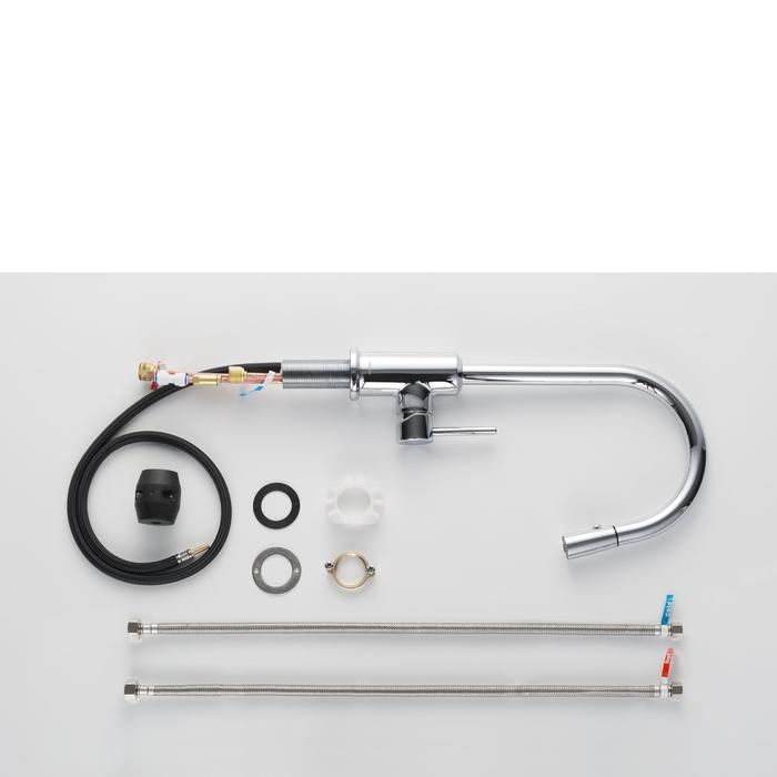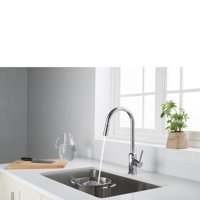 - Brighton Kitchen Faucet w/ Spray Head Gooseneck Chrome Single Lever Mixer