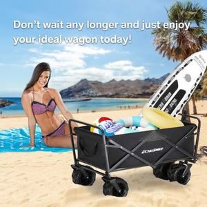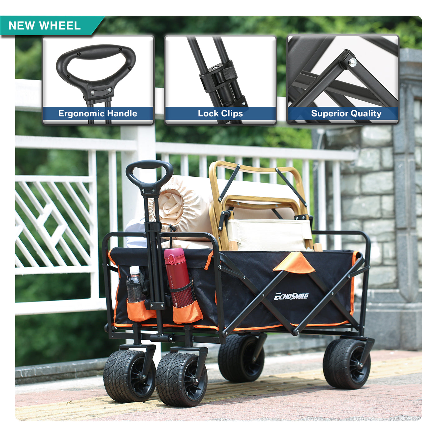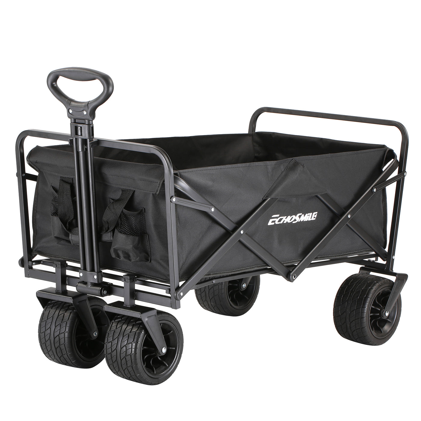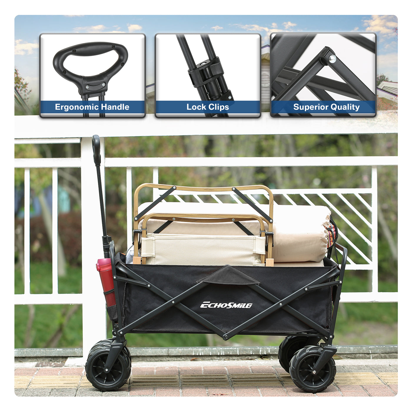 • Fast Set-Up & Fold: No assembly required for EchoSmile big collapsible wagon heavy duty. A convenient size for both storage and expanded use. Fast and easy to set up in seconds and has an attached handle to move the beach cart. This folding heavy-duty wagon can be folded compactly to store easily in a compact car, or garage, ensuring easy transport.