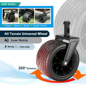 • All-Terrain Wheels Wagon: This cart with wheels heavy duty has solid wheels of 4”x7”, not just for the sandy beach, but for snow, dirt, street, or grass maneuvering. It also makes the hand wagon cart sturdy for navigating street curbs or rocks fast, as you pull heavy loads on the rugged and outdoor terrain.