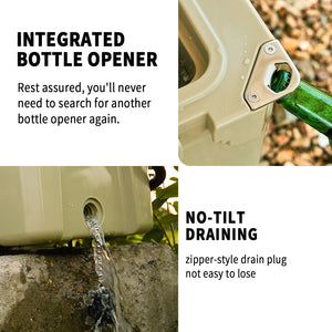 • STURDY ROTOMOLDED CONSTRUCTION: Solid rotary mold ice chests and coolers, with classic surface color and natural luster, use LLDPE material, which is safe & environmental-friendly, sturdy & anti-resistant, inside(food grade) and outside(UV resistance).