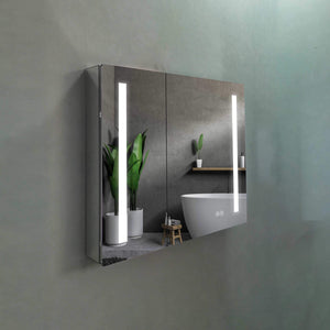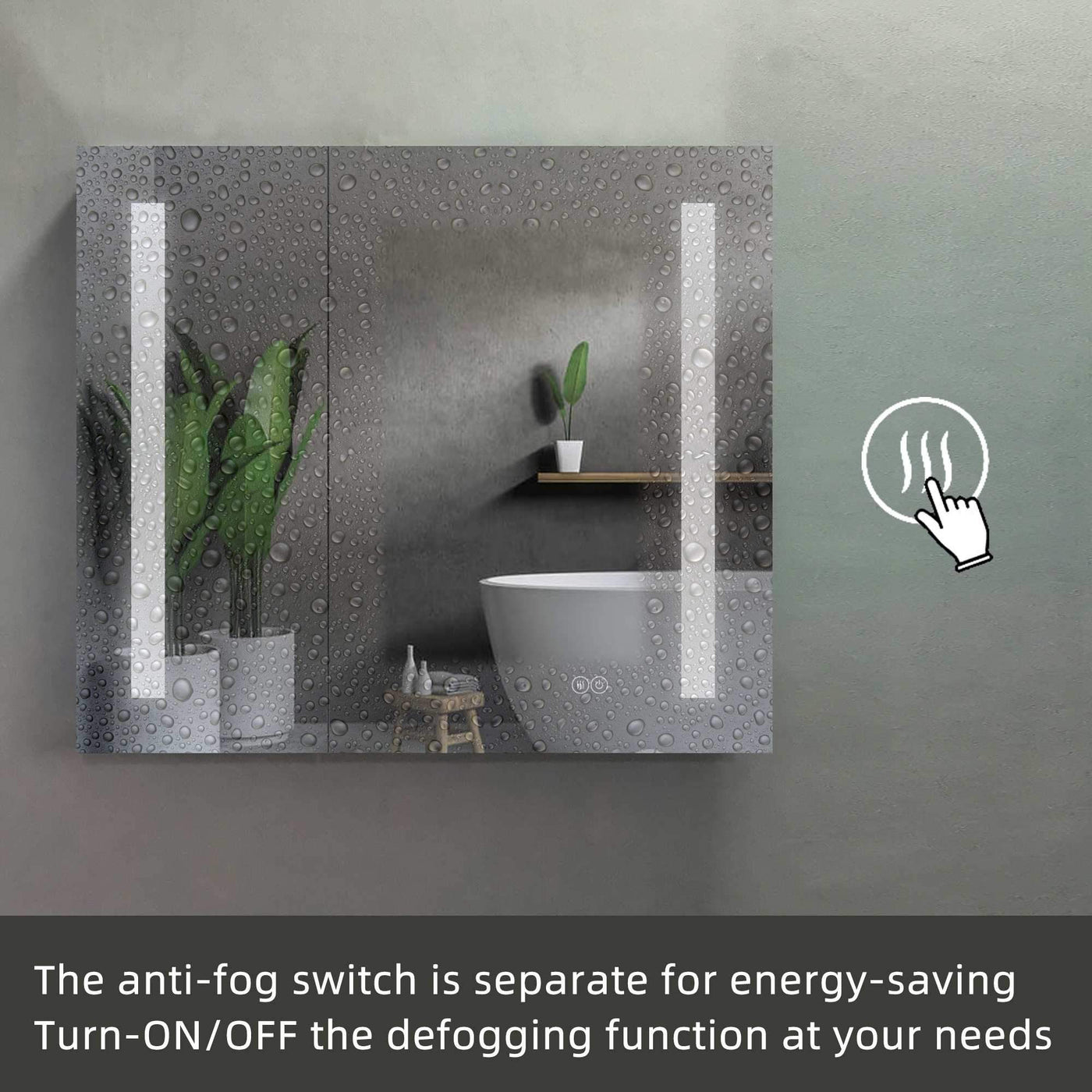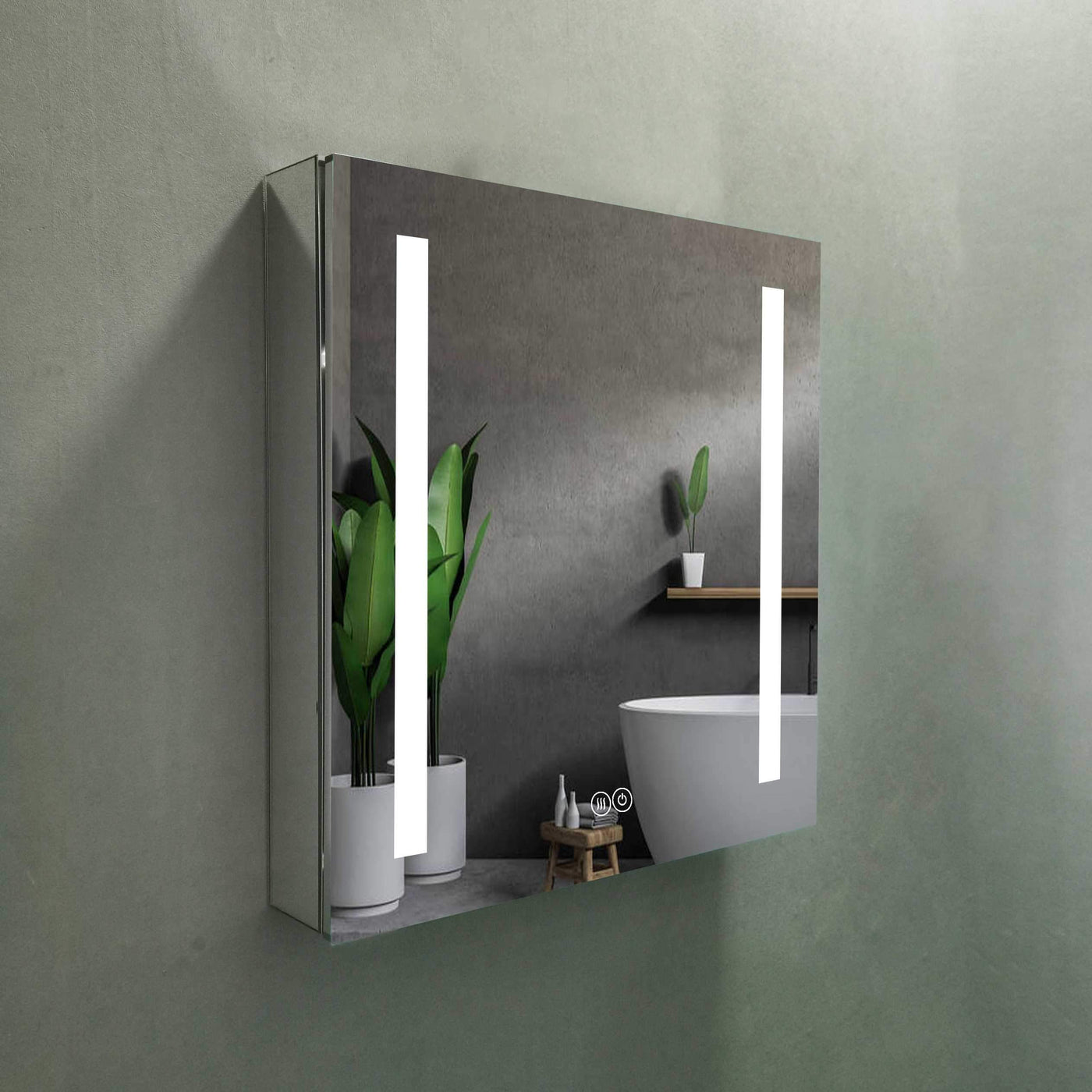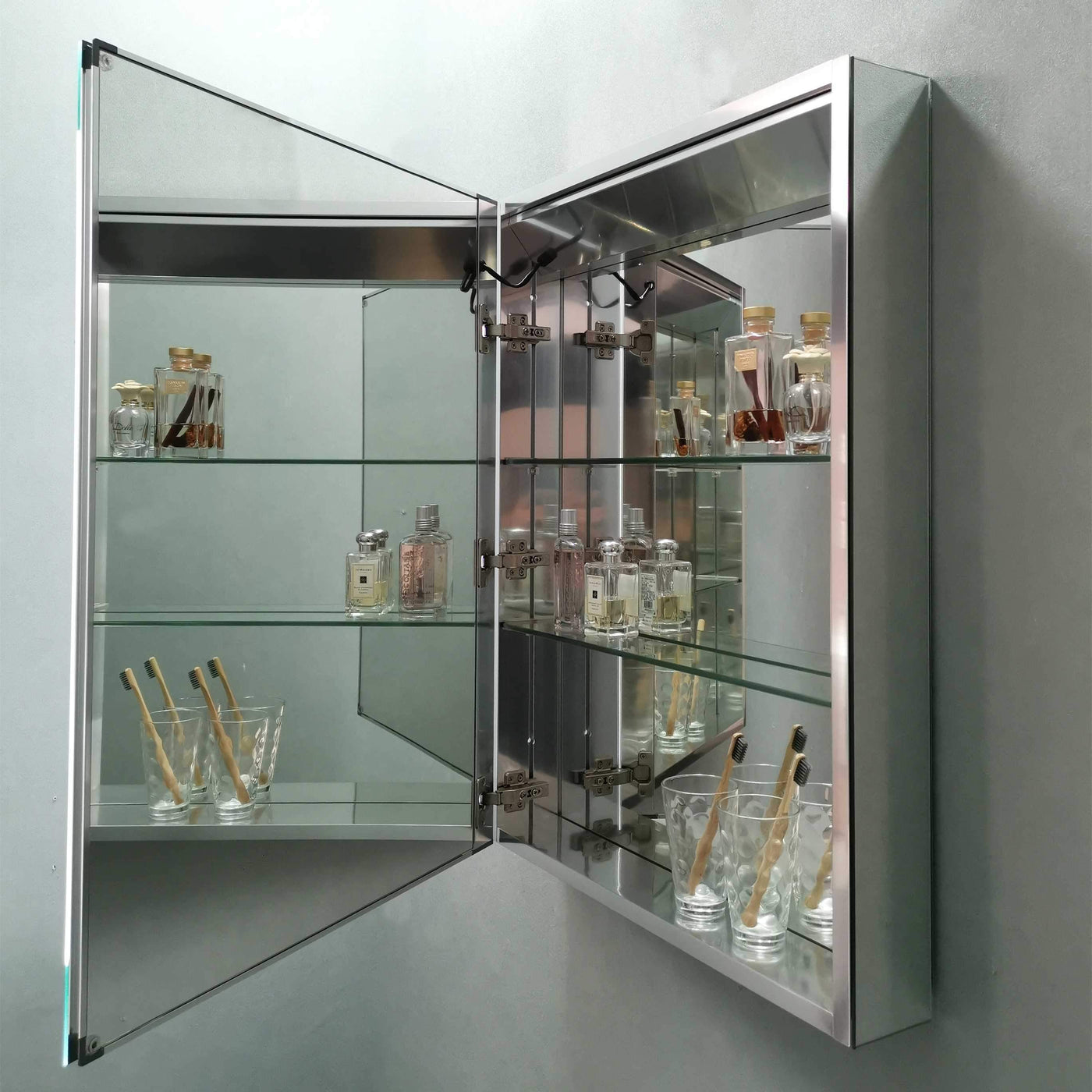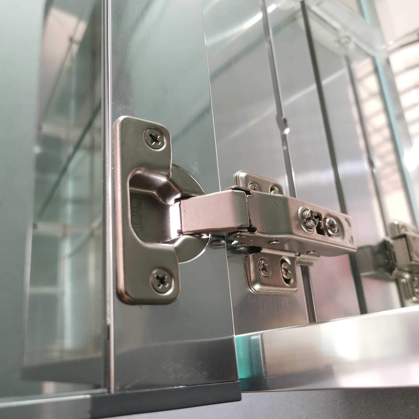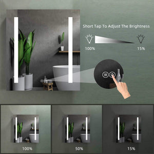 Why not come to pick up this modern and simple designed bathroom led mirror cabinet! The polished Anodized aluminum medicine cabinet is well fabricated with a double - sided mirrored door, adjustable tempered glass shelves,and dimming & memory function, the fog - free device will bring you all clear beauty in your mirror. The useful shelves help you organize your bath and makeup items, and enjoy your tidy space all the time. No headache to make as the pretty mirror cabinet is suitable for different bathroom styles, and applies both for surface mount and recessed mount installation.