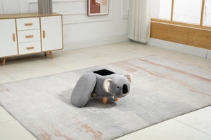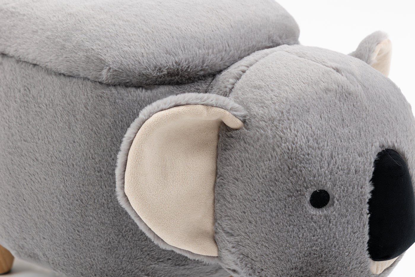 Grey Koala Animal Storage Ottoman with Wood Legs
