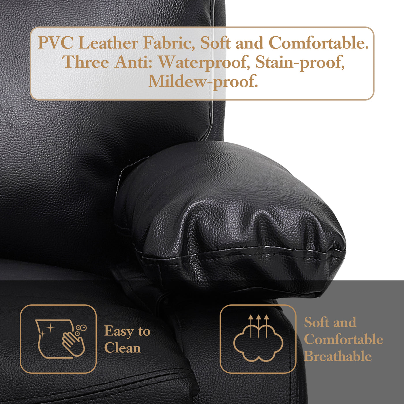 • Top-notch PVC Leather Upholstery, Exceptionally Soft and Comfortable. Features Three Anti-properties: Waterproof, Mildew-proof, and Stain-proof.