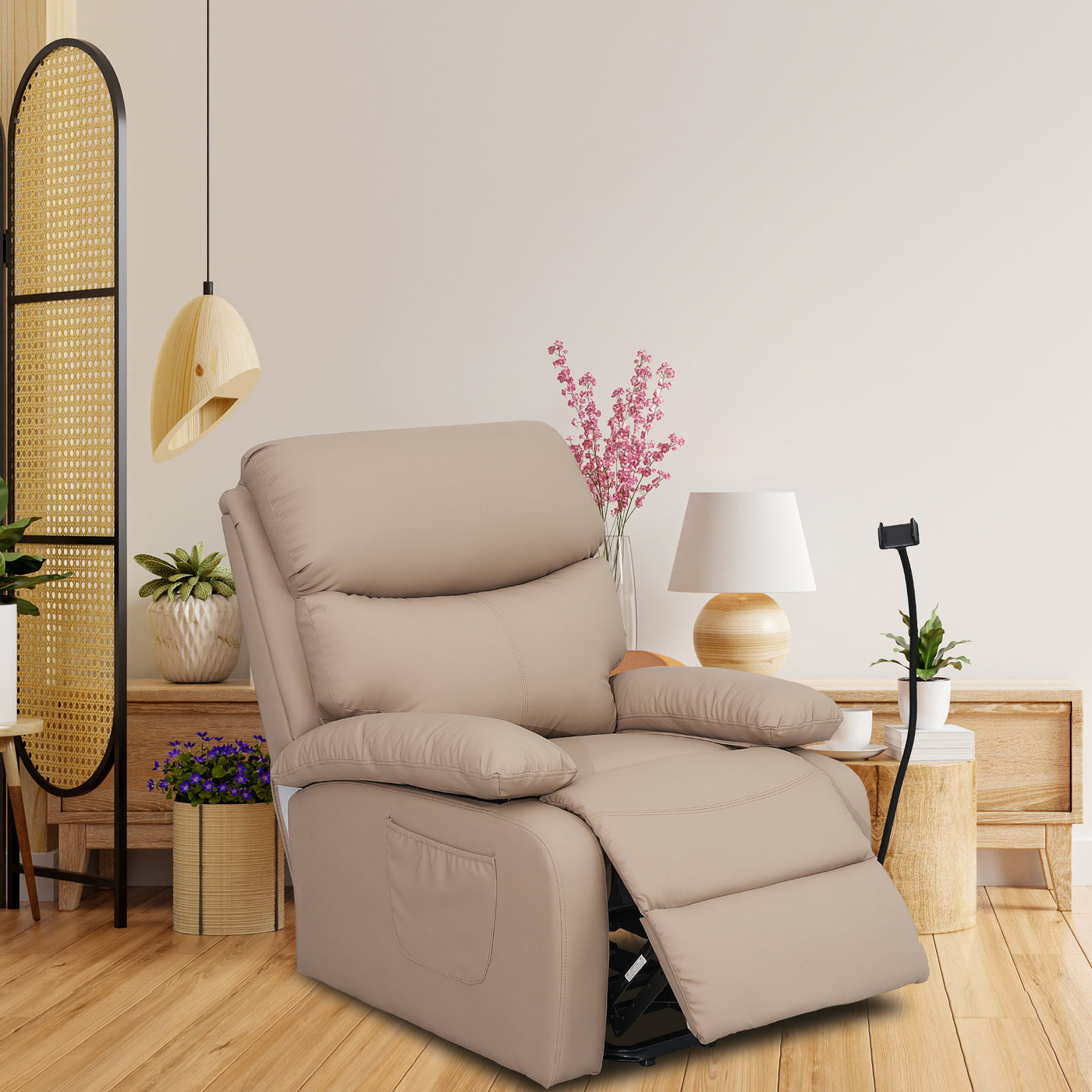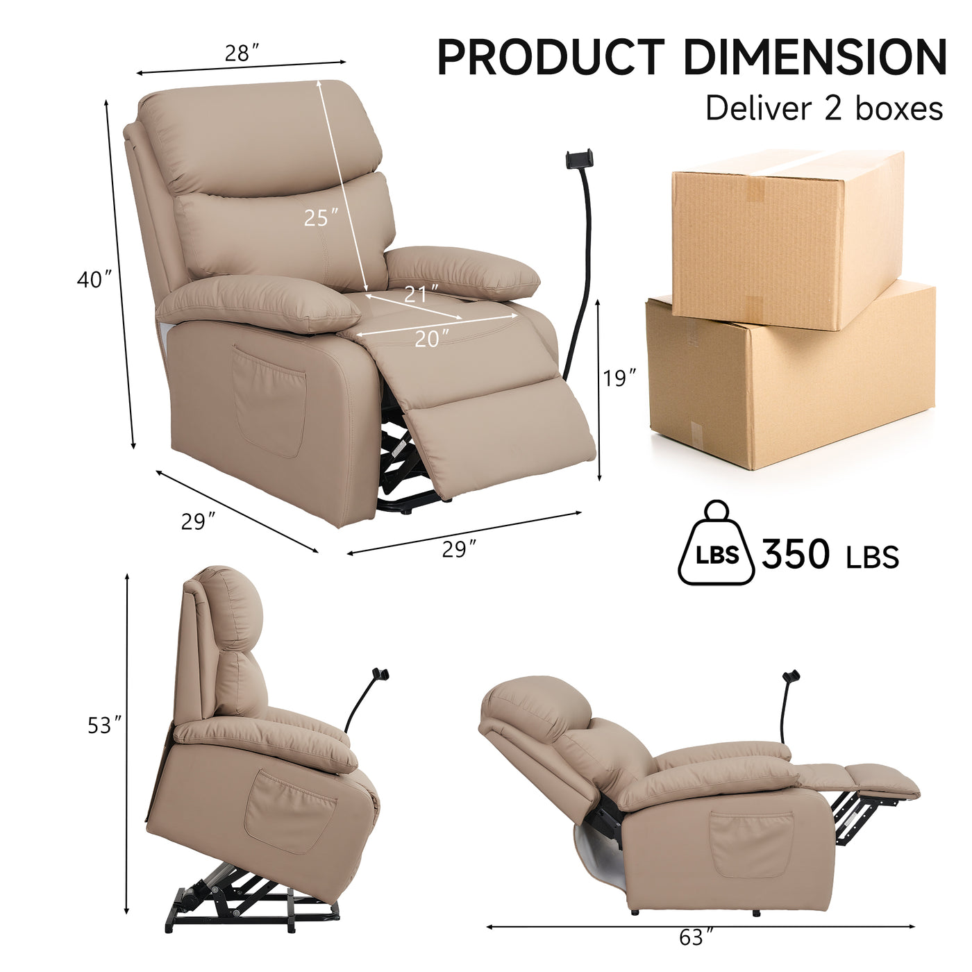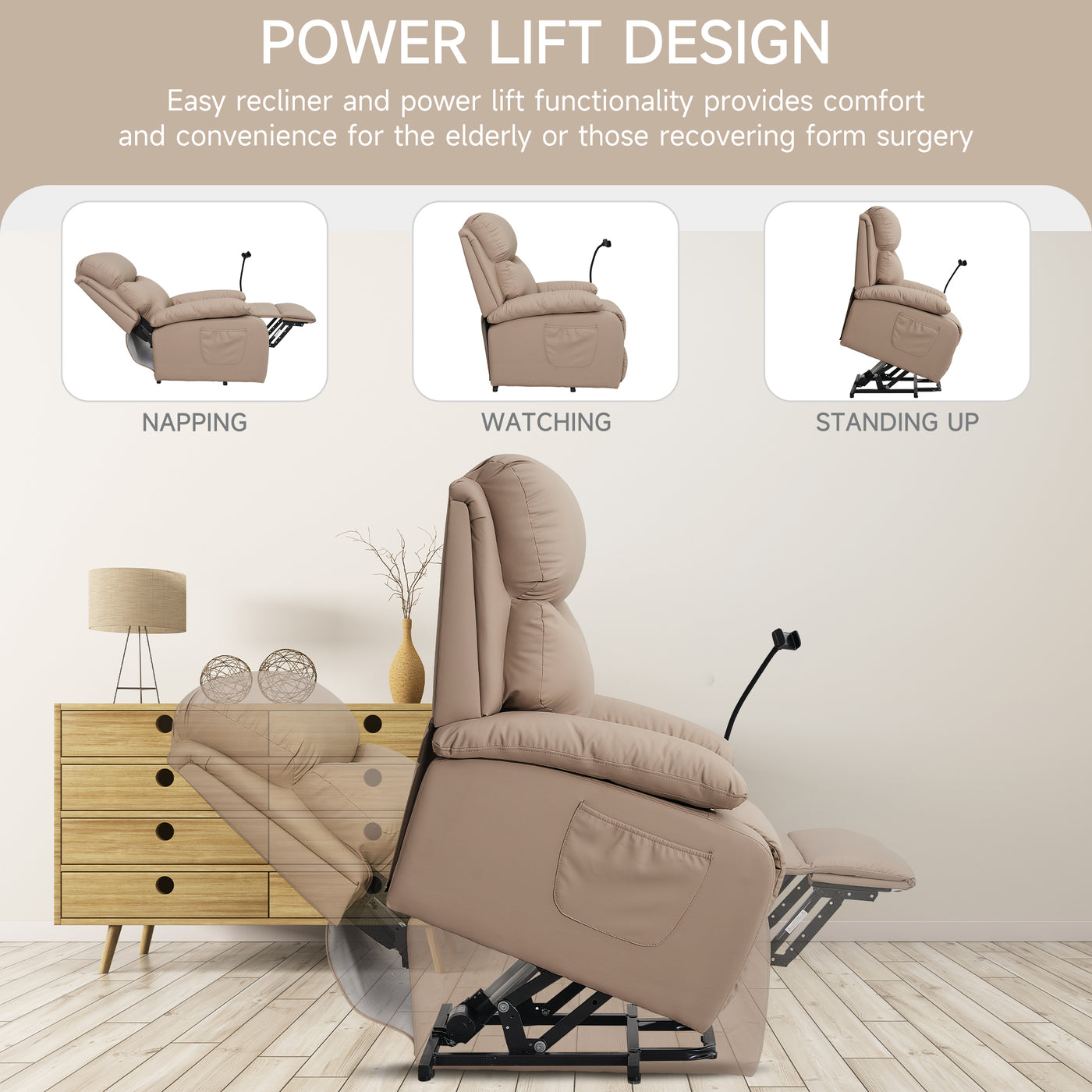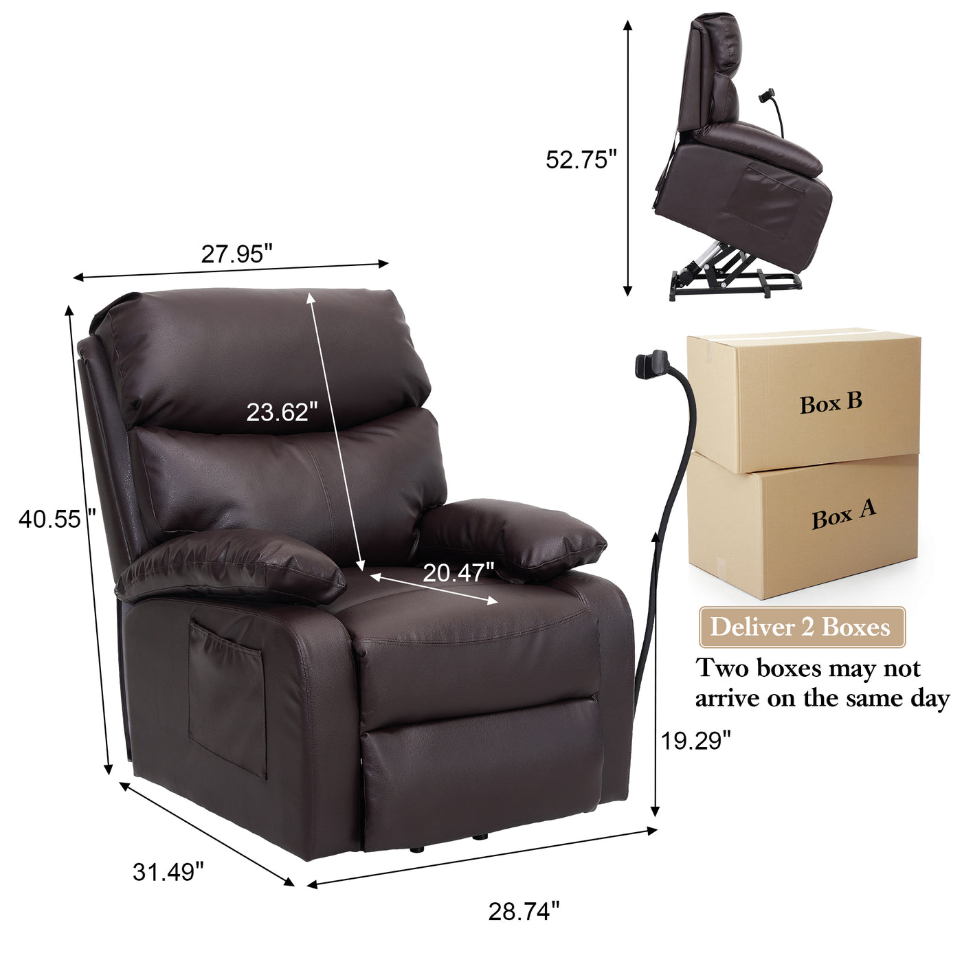 This modern, petite and cozy power lift recliner is perfect for your living room, home theater or RV. Its compact size fits to small home spaces. It's made from durable, high-quality technology leather that not only feels luxurious, but stands up to wear and tear. Generous padding ensures a comfortable seating position, ideal for relaxing. Its sleek design adds a modern touch to any space. Easy to clean and simple to install, this recliner is a convenient choice for creating a stylish and cozy corner in your home.