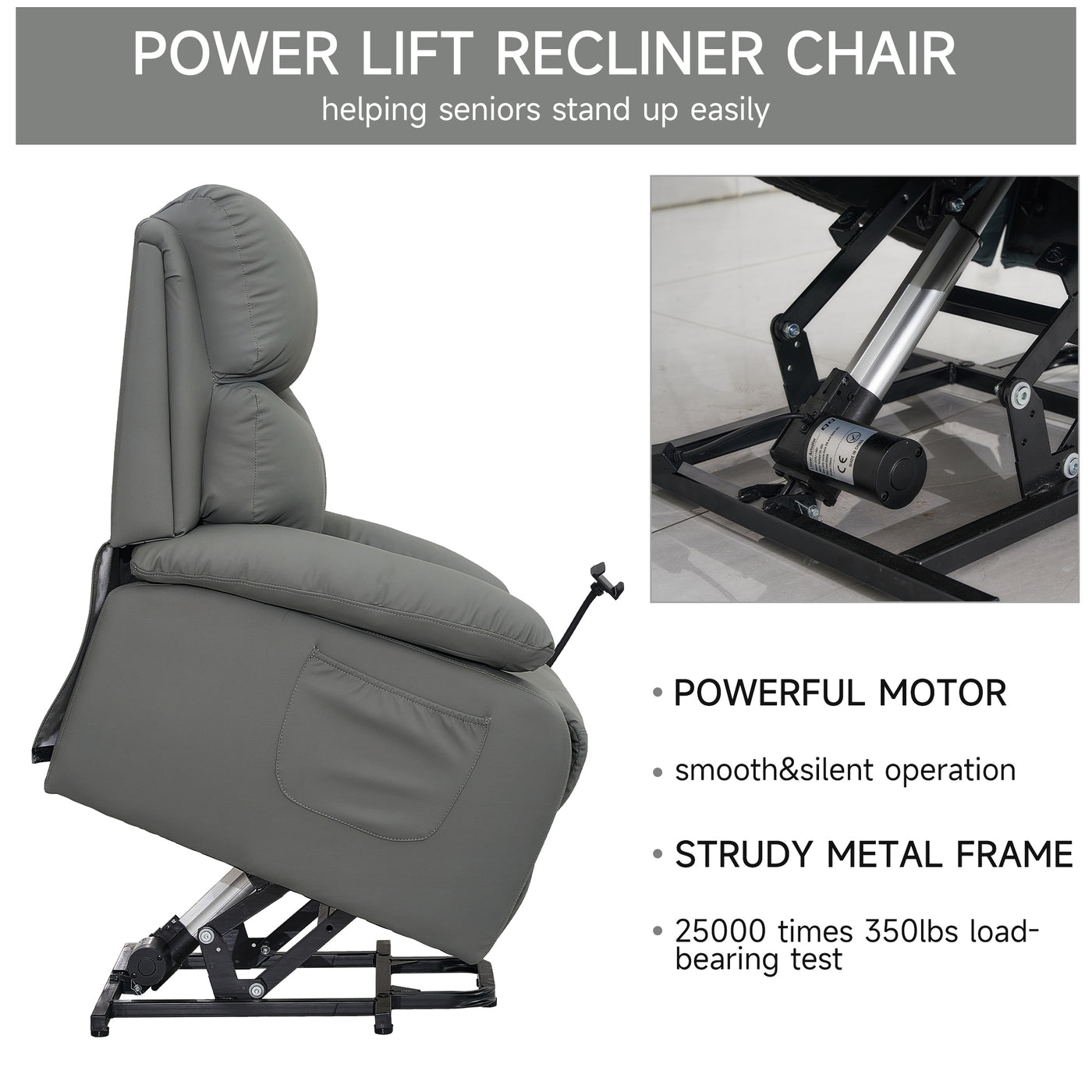 Everglade 28.7 in. W Faux Leather Power Lift Recliner for Elderly Assistance