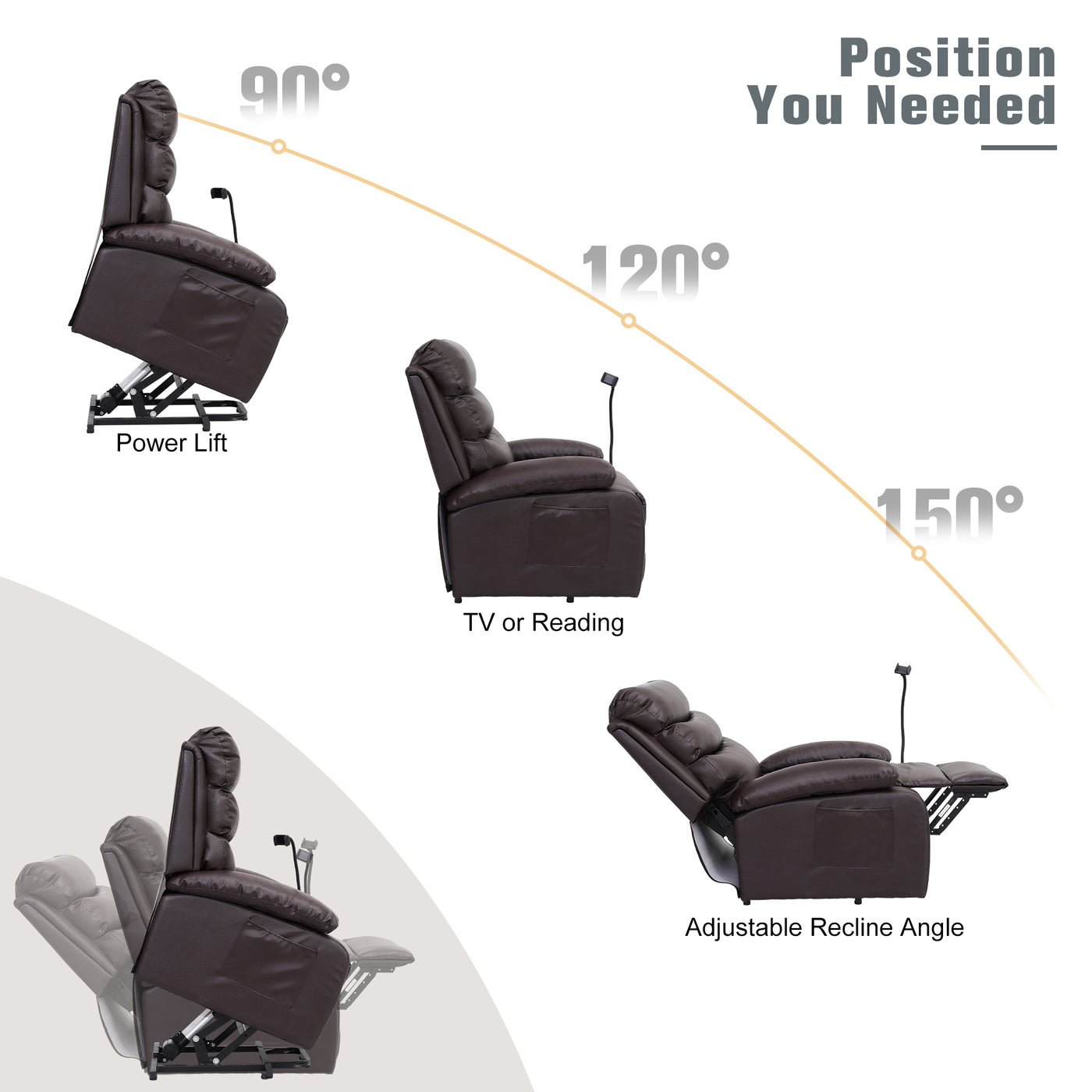 >Multi-angle adjustment: backward recline of 90-150 degrees The cozy ergonomic recliner offers a wide range of adjustability, allowing users to find their desired position for optimal comfort and relaxation