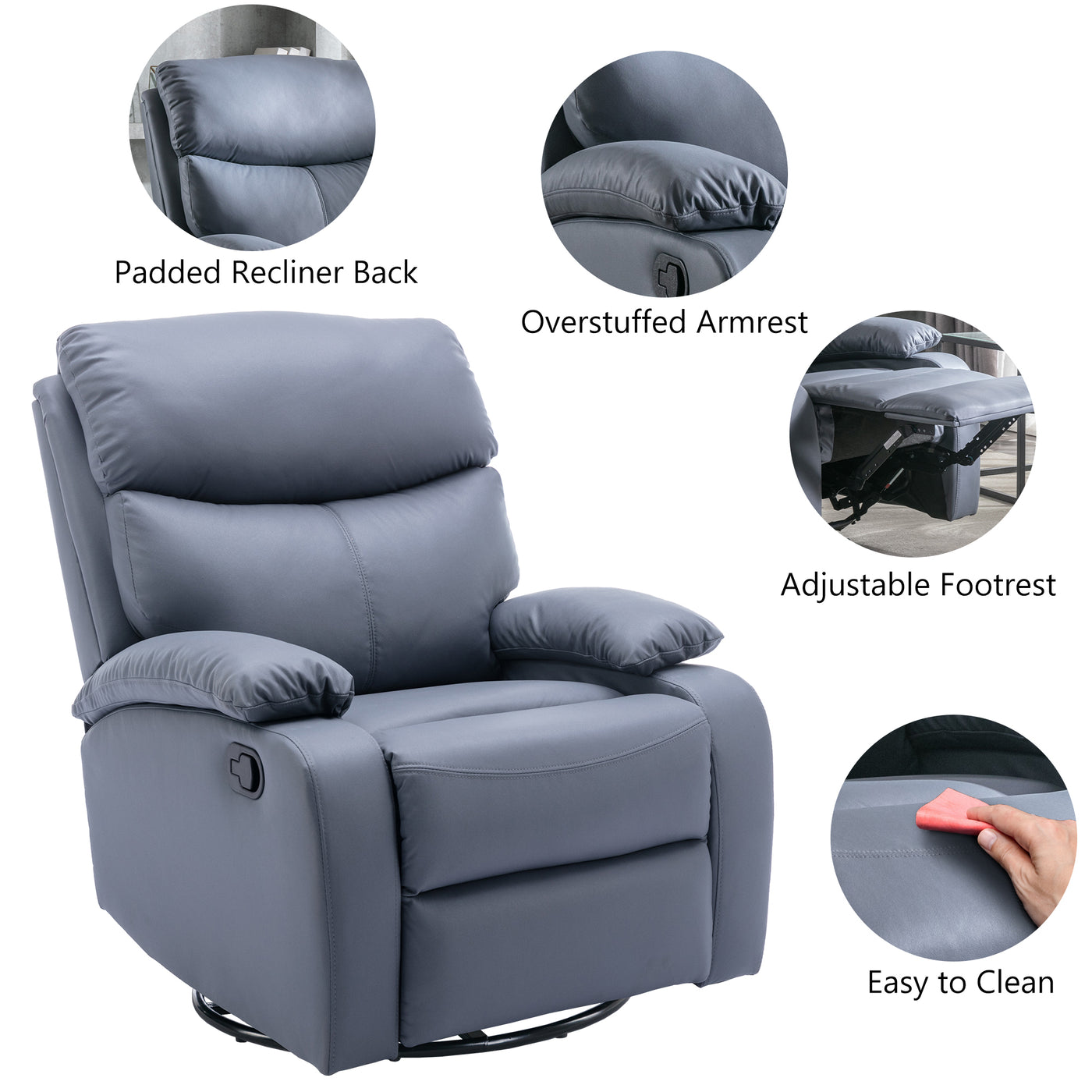{"id":6987089018977,"title":"Everglade 30.2 in. W Technical Leather Upholstered Swivel and Rocking Manual Recliner","handle":"yingj-faux-leather-upholstered-recliner","description":"\u003ch2 data-mce-fragment=\"1\"\u003e\u003cspan style=\"color: #ff8000;\" data-mce-fragment=\"1\" data-mce-style=\"color: #ff8000;\"\u003e\u003cstrong data-mce-fragment=\"1\"\u003eDescription\u003c\/strong\u003e\u003c\/span\u003e\u003c\/h2\u003e\n\u003cp data-mce-fragment=\"1\"\u003eIt is a fact that The recliner chair is a perfect prduces for any room in your home. This chaise lounge exudes luxury and comfort whether it is lying down or put away. Our recliner is made of technical leather that has a smooth touch that adds sophistication to this recliner, allowing you to get style without compromising on relaxation. The swivel recliner is one of the ideal choices for any lounge or office , living room, executive lounge or even bedroom. It offers comfortable support in a comfortable and convenient design. The chair reclines and features a 360-degree swivel so you can sit to work, lie back to read or watch TV, or simply take a nap in the afternoon sun.\u003c\/p\u003e\n\u003ch2 data-mce-fragment=\"1\"\u003e\u003cspan style=\"color: #ff8000;\" data-mce-fragment=\"1\" data-mce-style=\"color: #ff8000;\"\u003e\u003cstrong data-mce-fragment=\"1\"\u003eOverview\u003c\/strong\u003e\u003c\/span\u003e\u003c\/h2\u003e\n\u003cp data-mce-fragment=\"1\"\u003e\u003cspan data-mce-fragment=\"1\"\u003e\u0026gt;Recliner Adjustment Angle: the adjustable angle of this recliner is 90-150 degree\u003c\/span\u003e\u003c\/p\u003e\n\u003cp data-mce-fragment=\"1\"\u003e\u003cspan data-mce-fragment=\"1\"\u003e\u0026gt;In order to produce bump in transit, we will be divided into two packages shipped, only to better provide customers with a good shopping experience\u003c\/span\u003e\u003c\/p\u003e\n\u003cp data-mce-fragment=\"1\"\u003e\u003cspan data-mce-fragment=\"1\"\u003e\u0026gt;Comfotable Rear Chair: With a highly flexible foam cushion wrapped , this swivel recliner gives you a more comfortable sitting experience. Unique high quality fabric, comfortable, delicate, good abrasion resistance, breathable, soft and easy to maintain\u003c\/span\u003e\u003c\/p\u003e\n\u003cp data-mce-fragment=\"1\"\u003e\u003cspan data-mce-fragment=\"1\"\u003e\u0026gt;Rocking Swivel Chair: sturdy rocking chair and heavy-duty steel device makes this recliner can support 350 pounds, high-strength spring support to ensure that the seat will not collapse after frequent use, can provide us with excellent swivel rocking chair support\u003c\/span\u003e\u003c\/p\u003e\n\u003cp data-mce-fragment=\"1\"\u003e\u003cspan data-mce-fragment=\"1\"\u003e\u0026gt;Easy Recline and 360 degree Rotation: This recliner can easily recline so you can sit upright to work, lie down to read, watch TV, or adjust to a reclined position for a nap\u003c\/span\u003e\u003c\/p\u003e\n\u003cp data-mce-fragment=\"1\"\u003e\u003cspan data-mce-fragment=\"1\"\u003e\u0026gt;Elevated leg rest: the foot rest extends from the front, allowing you to stretch your legs, the whole body and mind will be relaxed\u003c\/span\u003e\u003c\/p\u003e","published_at":"2024-02-18T22:59:00-08:00","created_at":"2023-06-20T02:22:06-07:00","vendor":"Hzlagm","type":"Recliner","tags":["Manual Recliner","Recliner","recliner chair","Recliners","Small Recliner"],"price":26900,"price_min":26900,"price_max":26900,"available":false,"price_varies":false,"compare_at_price":53600,"compare_at_price_min":53600,"compare_at_price_max":53600,"compare_at_price_varies":false,"variants":[{"id":40874051272801,"title":"Gray","option1":"Gray","option2":null,"option3":null,"sku":"HZ-G01GYPRO","requires_shipping":true,"taxable":true,"featured_image":{"id":32715665244257,"product_id":6987089018977,"position":1,"created_at":"2023-06-20T02:37:27-07:00","updated_at":"2023-06-20T02:37:29-07:00","alt":null,"width":2000,"height":2000,"src":"\/\/jhomecommerce.myshopify.com\/cdn\/shop\/files\/HZ-G01GYPRO_01.jpg?v=1687253849","variant_ids":[40874051272801]},"available":false,"name":"Everglade 30.2 in. W Technical Leather Upholstered Swivel and Rocking Manual Recliner - Gray","public_title":"Gray","options":["Gray"],"price":26900,"weight":25447,"compare_at_price":53600,"inventory_management":"shopify","barcode":"790864808323","featured_media":{"alt":null,"id":25088962789473,"position":1,"preview_image":{"aspect_ratio":1.0,"height":2000,"width":2000,"src":"\/\/jhomecommerce.myshopify.com\/cdn\/shop\/files\/HZ-G01GYPRO_01.jpg?v=1687253849"}},"requires_selling_plan":false,"selling_plan_allocations":[]},{"id":40874051305569,"title":"Green","option1":"Green","option2":null,"option3":null,"sku":"HZ-G01GREENPRO","requires_shipping":true,"taxable":true,"featured_image":{"id":32715667931233,"product_id":6987089018977,"position":9,"created_at":"2023-06-20T02:37:38-07:00","updated_at":"2023-06-20T02:37:41-07:00","alt":null,"width":2000,"height":2000,"src":"\/\/jhomecommerce.myshopify.com\/cdn\/shop\/files\/HZ-G01GREENPRO_01.jpg?v=1687253861","variant_ids":[40874051305569]},"available":false,"name":"Everglade 30.2 in. W Technical Leather Upholstered Swivel and Rocking Manual Recliner - Green","public_title":"Green","options":["Green"],"price":26900,"weight":25447,"compare_at_price":53600,"inventory_management":"shopify","barcode":"790864808316","featured_media":{"alt":null,"id":25088965247073,"position":9,"preview_image":{"aspect_ratio":1.0,"height":2000,"width":2000,"src":"\/\/jhomecommerce.myshopify.com\/cdn\/shop\/files\/HZ-G01GREENPRO_01.jpg?v=1687253861"}},"requires_selling_plan":false,"selling_plan_allocations":[]},{"id":40874051338337,"title":"Off White","option1":"Off White","option2":null,"option3":null,"sku":"HZ-G01CRPRO","requires_shipping":true,"taxable":true,"featured_image":{"id":32715670257761,"product_id":6987089018977,"position":17,"created_at":"2023-06-20T02:37:50-07:00","updated_at":"2023-06-20T02:37:51-07:00","alt":null,"width":2000,"height":2000